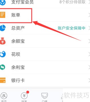 2、 打开支付宝,进入我的页面,点击账单即可查看。