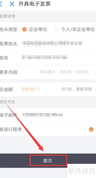14、 填写发票抬头、税号和邮箱后,点击提交即可完成。