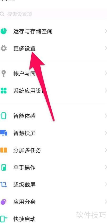 2、 滚动至设置页面底端,选择更多选项。