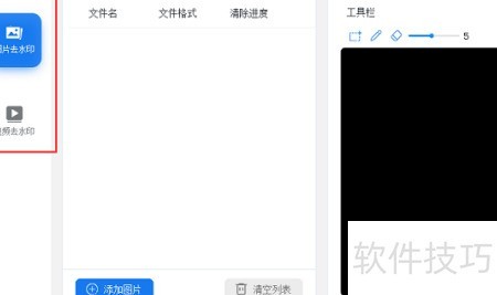 2、 打开后可见图片去水印与视频去水印功能,初始界面为图片处理,若需处理视频,点击视频去水印即可进入相应页面。