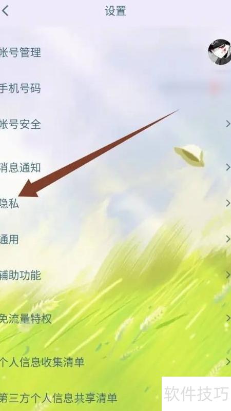 1、 进入手机QQ设置,点击隐私选项即可。