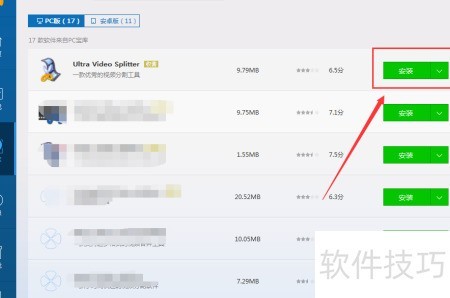 6、 进入软件管理界面,顶部搜索框内输入Ultra Video Splitter6.4.1208,查找到该软件后,直接点击安装按钮完成安装。
