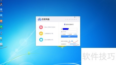 3、 启动程序后登录百度网盘,需提前注册百度账号,或使用QQ、微信等第三方平台账户进...