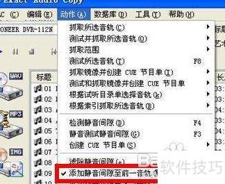 2、 放入CD并按F4执行间隙检测,确保已勾选添加静音间隙至前一音轨(默认)选项。
