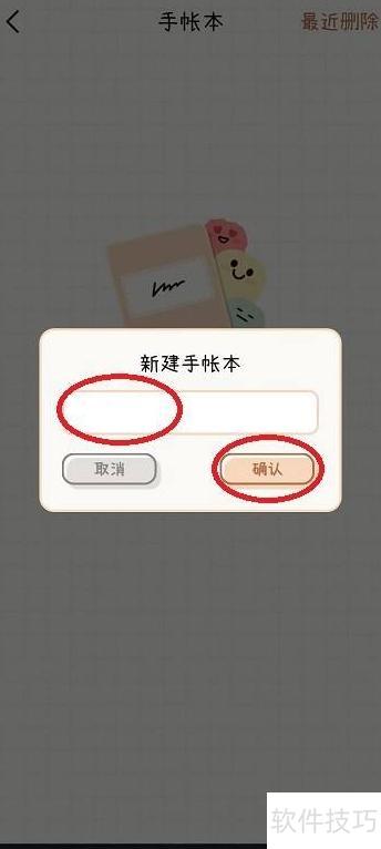 4、 跳转页面后,输入手帐本名称,点击确认即可完成操作。
