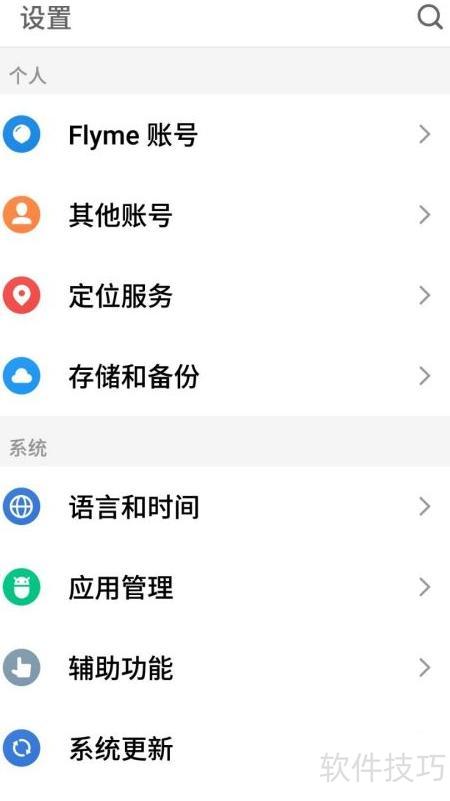 3、 进入设置,下滑至个人选项,点击flyme账号即可。