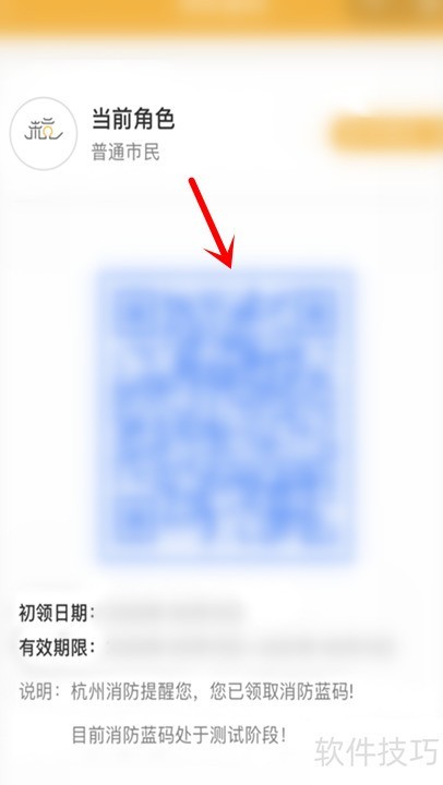 10、 最后可查看个人消防蓝码,具体样式见示例图。