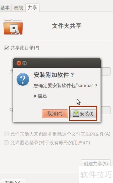 5、 提示安装Samba附加软件,点击以继续操作。