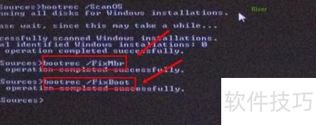 8、 运行bootrec /FixMbr与bootrec /FixBoot命令后,退回到上级界面。