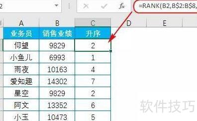 2、 对B2至B8区域数据按升序排列,返回B2在其中的排名位置。