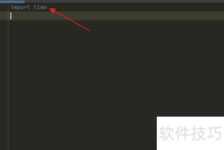 3、 在Python编辑区域输入import time,以导入time模块。