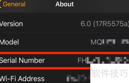 13、 在此屏幕查找设备的序列号或IMEI号码。