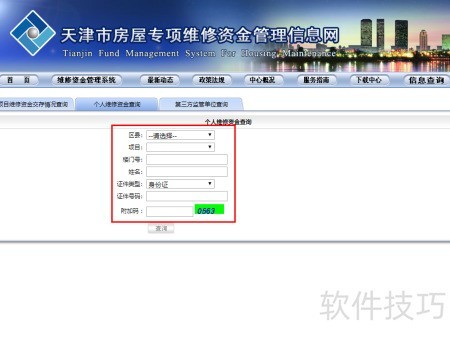 4、 进入个人维修资金查询页面,填写房屋地址、房主姓名及证件信息后,点击查询即可。