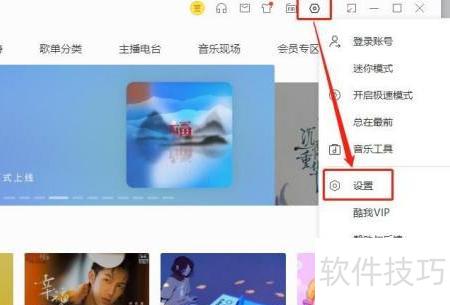 1、 启动酷我音乐,点击右上角的设置图标,进入选项,操作所示。