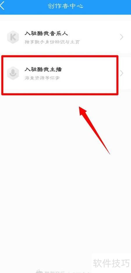 5、 在切换后的界面点击入驻酷我主播,按提示操作即可完成入驻流程。