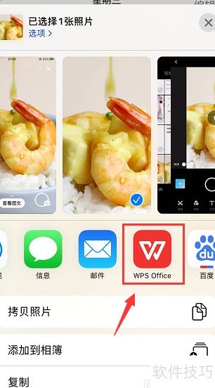 1、 在手机相册中打开目标照片,点击左下角分享按钮进行转换操作。
