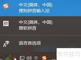 1、 点击右下角输入法图标,进入语言设置选项。