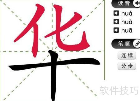 8、 点击笔顺可选两种模式,其一为连续书写各笔画。