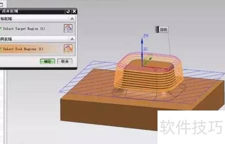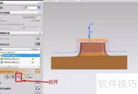 4、 改为陡峭切削后,选中该区域,点击合并,再选择相邻区域继续合并操作。