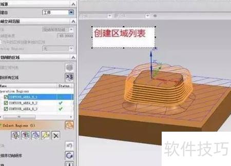 2、 调整加工区域顺序时,可在创建的区域列表中通过拖动来重新排列切削区域的执行顺序。