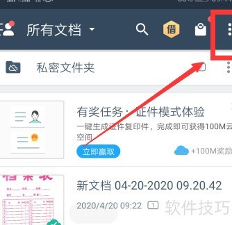 2、 打开全能扫描王,点击右上角的三个点图标。