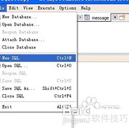 8、 在文件菜单中选择新建SQL,即可在右上方区域打开新选项卡,用于执行SQL语句查询操作。