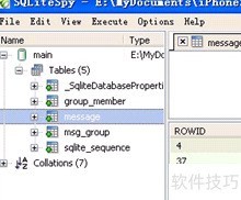 7、 点击后将打开message表,图中展示其具体内容,每条记录对应iPhone中的一条短信信息。