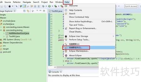 1、 在Eclipse中,点击右上角的帮助菜单,选择安装新软件进行操作。