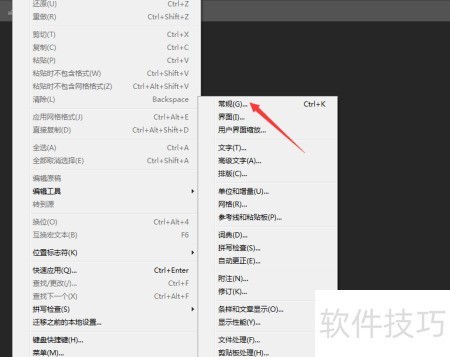 1、 点击编辑菜单,从下拉选项中选择常规设置。
