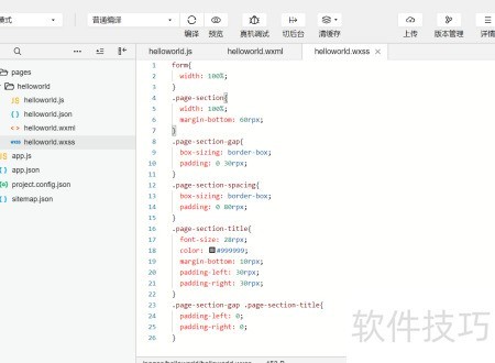 4、 在 wxss 文件中定义样式,供 wxml 页面调用使用。