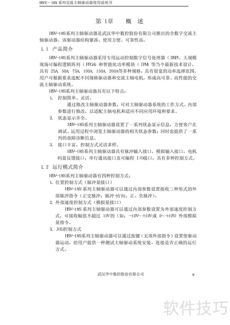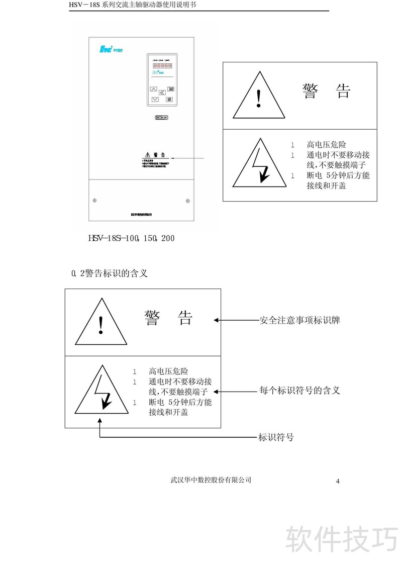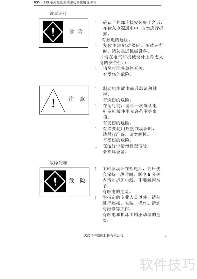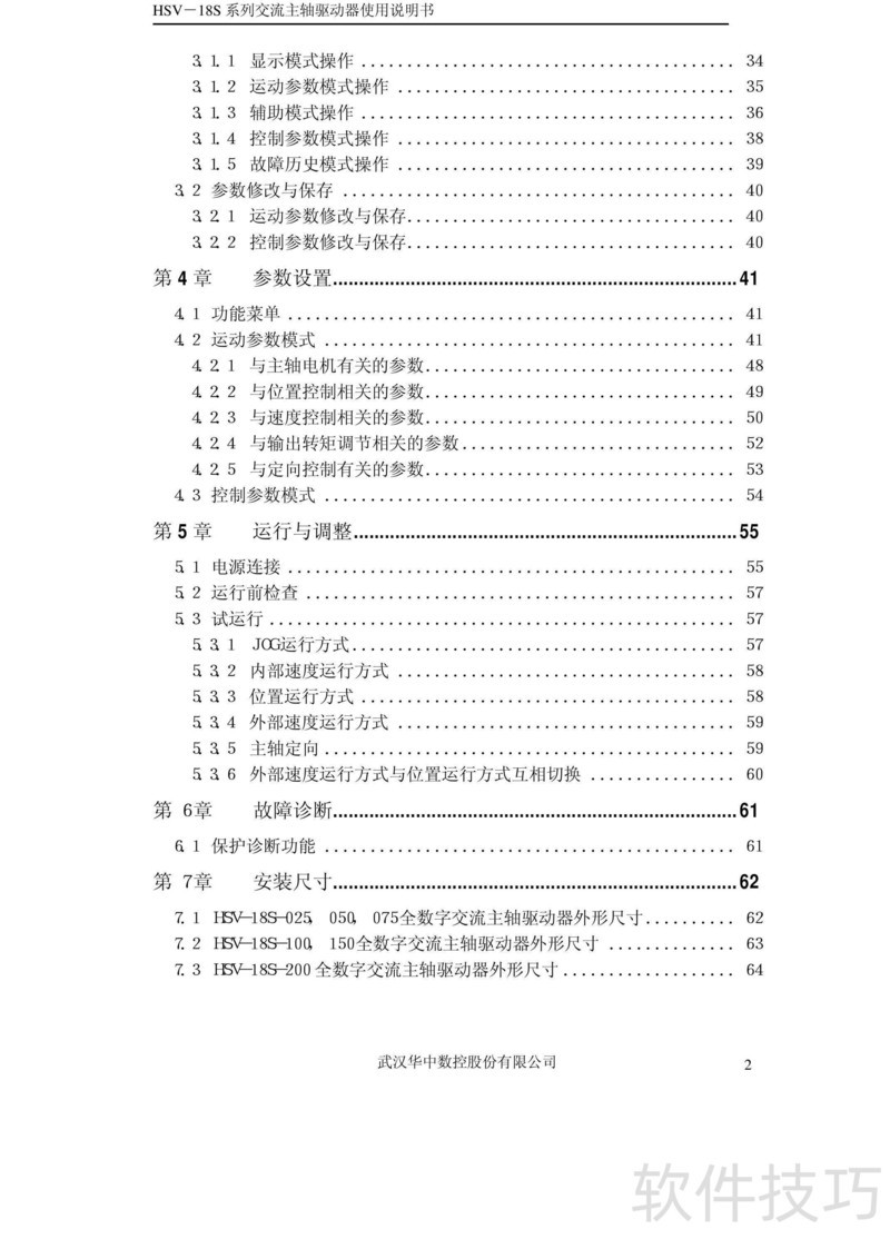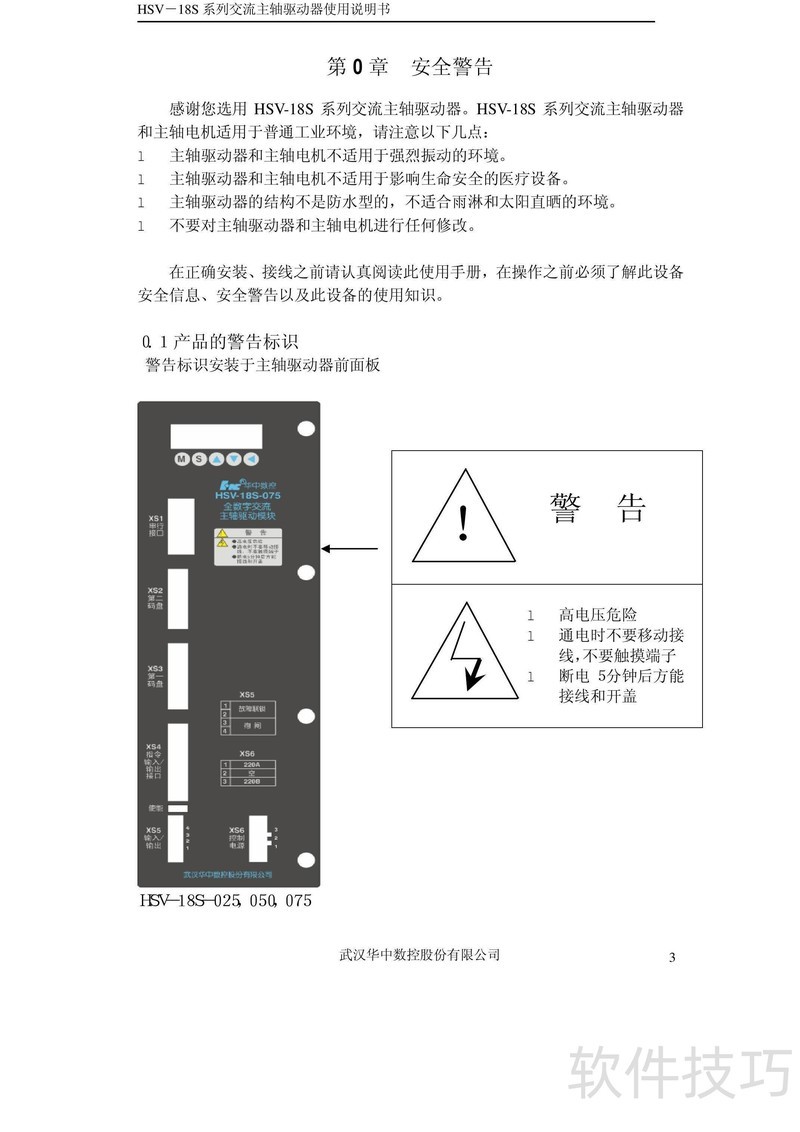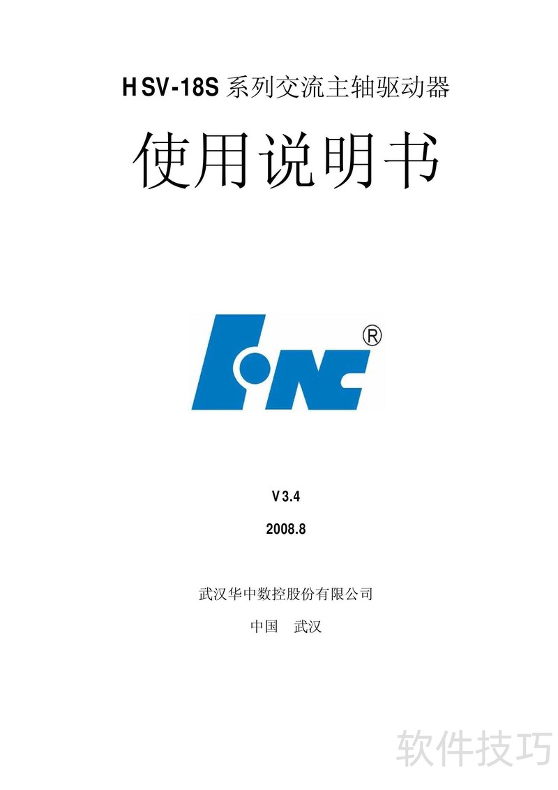 、 本书为HSV-18S系列交流主轴驱动器使用手册V3.4,详细说明产品操作方法及常见故障处理方案,供用户参考与使用。