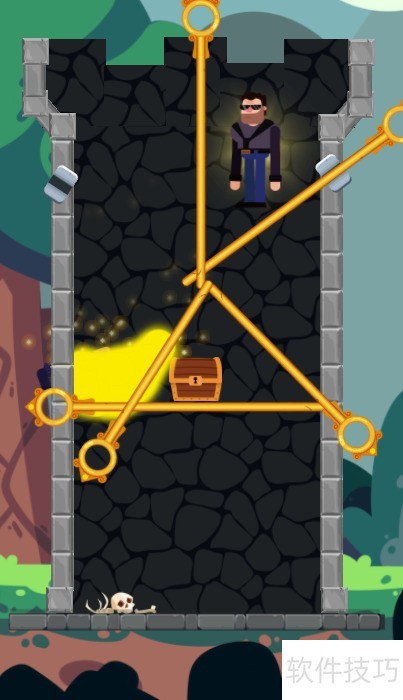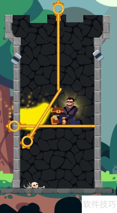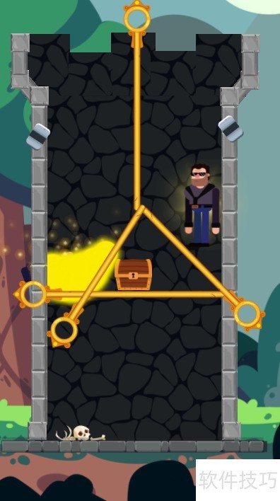 4、 点击取下宝箱右侧斜插销,黑衣男子取得宝箱,顺利通关。