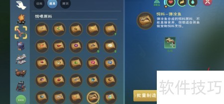 2、 第二步:将五条弹涂鱼用道具台加工成饲料。