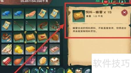 6、 雪原熊大饲料已制好,捕获约需15包,具体所示。