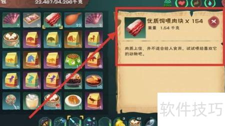 2、 制作雪原熊大饲料所需材料二:优质饲喂肉块,通过击杀20至25级怪物获得,具体所示。