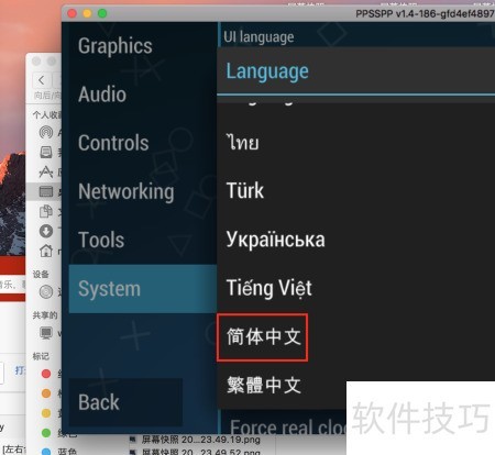 11、 选择中文语言,将游戏ROM导入并设置好按键,即可畅玩PSP游戏。