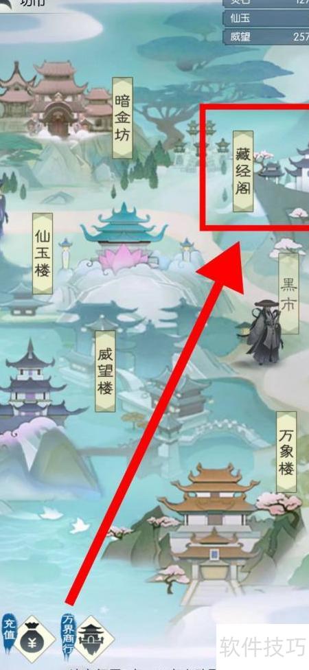 1、 启动游戏后进入藏经阁界面即可。