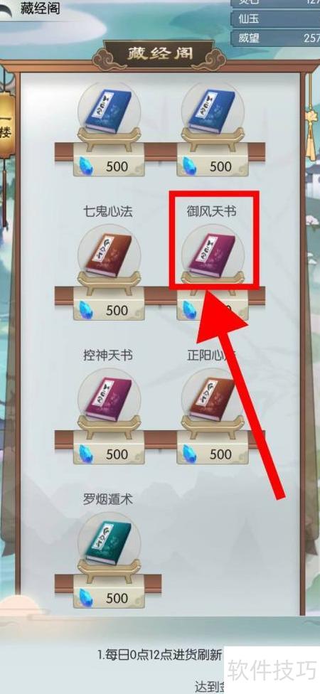 2、 进入藏经阁后,点击御风天书图标即可。