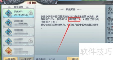 4、 完成任务,点击邮件领取奖励,即可获取御风值。