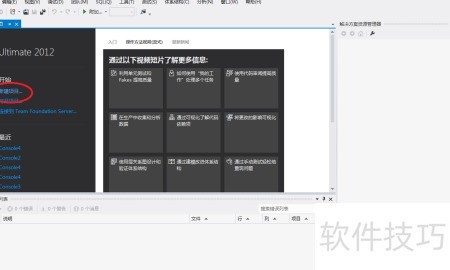1、 启动Visual Studio 2012软件,1所示,点击左侧的新建项目选项,操作见图2。