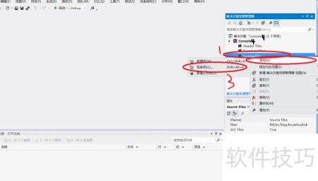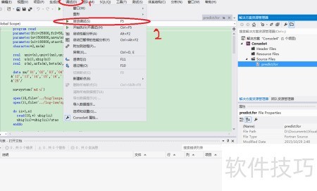 7、 打开Console4工程,1所示,右键点击其下的Source Files文件夹,选择添加/现有项目,然后选中已加入的.for文件即可。