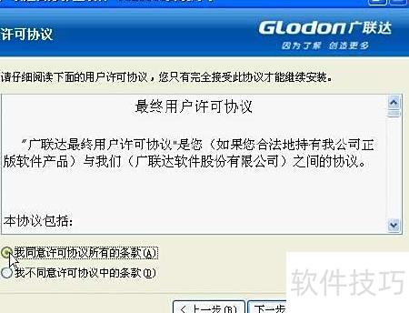 3、 点击下一步,进入许可协议页面,勾选同意全部条款选项。