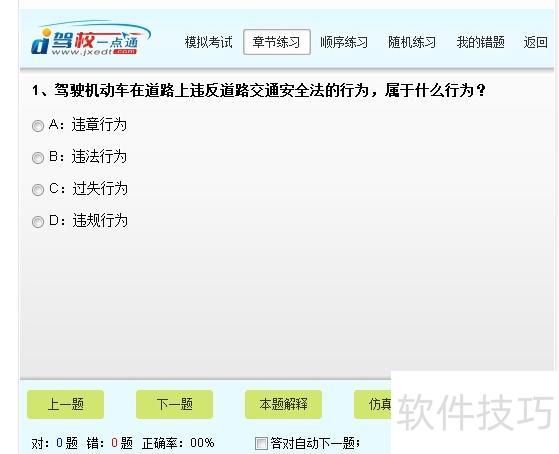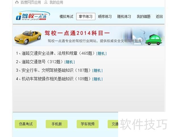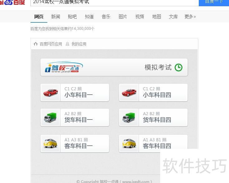 1、 如今汽车日益普及,考取驾照成为许多人的需求。本文将介绍2014驾校一点通模拟考试的使用方法。首先,在百度搜索2014驾校一点通模拟考试,找到相关链接后点击进入,按照页面提示进行操作即可开始练习科目一内容。