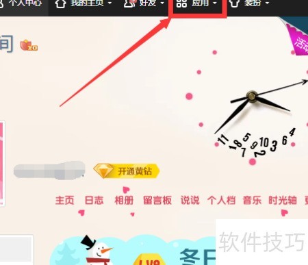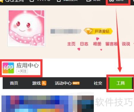 1、 进入QQ空间后,点击导航栏顶部中央的应用按钮,即可打开应用中心。