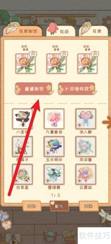 花店物语中花束制作方法,详细步骤如下。