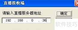 4、 当某个客户端启动直播服务后,其他已安装视频会议或直播客户端的用户,可通过开始菜单中的直播快捷方式打开程序,在弹出的地址输入框内填写直播服务器的IP地址,确认后即可实时接收来自服务器的音视频和相关数据内容。示意图如下: