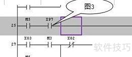 2、 进入写入模式后,双击目标位置将弹出图2所示对话框,按提示输入所需软元件即可修改梯形图。例如,在与后输入X97,效果3所示,该行会显示为反色。随后点击转换图标,该行颜色恢复至与画面一致,表示修改已完成,4所示。