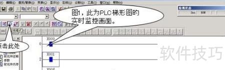 1、 开启电脑,读取PLC在线程序后,点击监控按钮进入画面,即可实时监控,1所示。