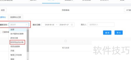 5、 进入狠巨态日志功能,点击模板名称后的输入框,在下拉菜单中选择财务现金流水账即可。
