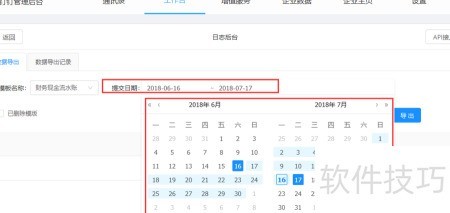 6、 选定项目后,点击提交日期旁的日期框,在弹出的日历中选择所需查询财务现金流水账的时间段即可。